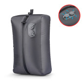Made from durable, waterproof vinyl, it ensures that your belongings remain protected from moisture and wear, maintaining a stylish look even with prolonged use. The front compartment features a convenient organizer for small items and a pocket for a power bank, allowing easy device charging through an external USB port. The second compartment is designed for transformation: in its compact state, it takes up minimal space, but when expanded, it offers the capacity of a small suitcase. The third compartment includes a dedicated laptop sleeve that fits devices up to 17 inches.